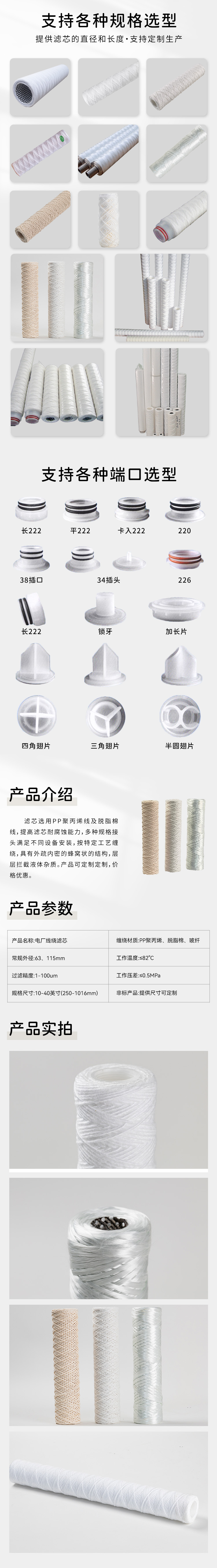 【產(chǎn)品簡(jiǎn)介】:過(guò)濾精度:1、3、5、10、25、50、75、100um 應(yīng)用行業(yè):電廠、反滲透過(guò)濾、循環(huán)水過(guò)濾、石化等 線繞濾芯在使用一段時(shí)間后,會(huì)因?yàn)闉V芯孔徑被堵塞而導(dǎo)致通量降低,影響過(guò)濾效果。因此,需要定期更換濾芯,以保證水處理系統(tǒng)的正常運(yùn)行。一般來(lái)說(shuō),濾芯的更換周期應(yīng)該根據(jù)實(shí)際情況而定,一般為3-6個(gè)月。